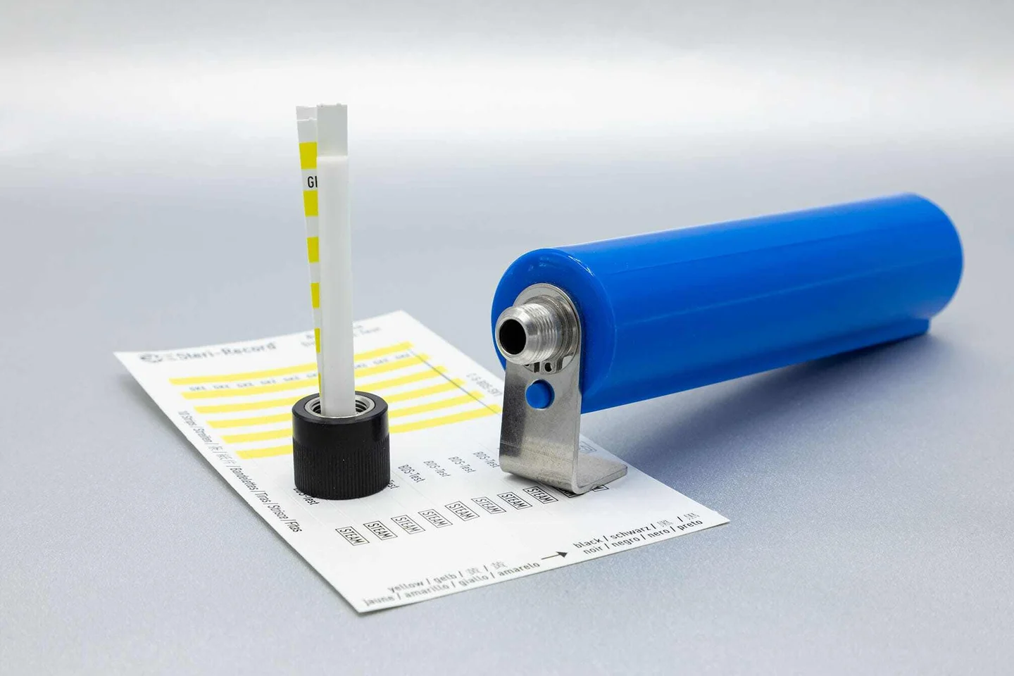 Process challenge device (PCD) for daily functionality check (type test, no sterility test) of air removal and steam penetration in steam sterilizers after start up, Compact-PCD, blue