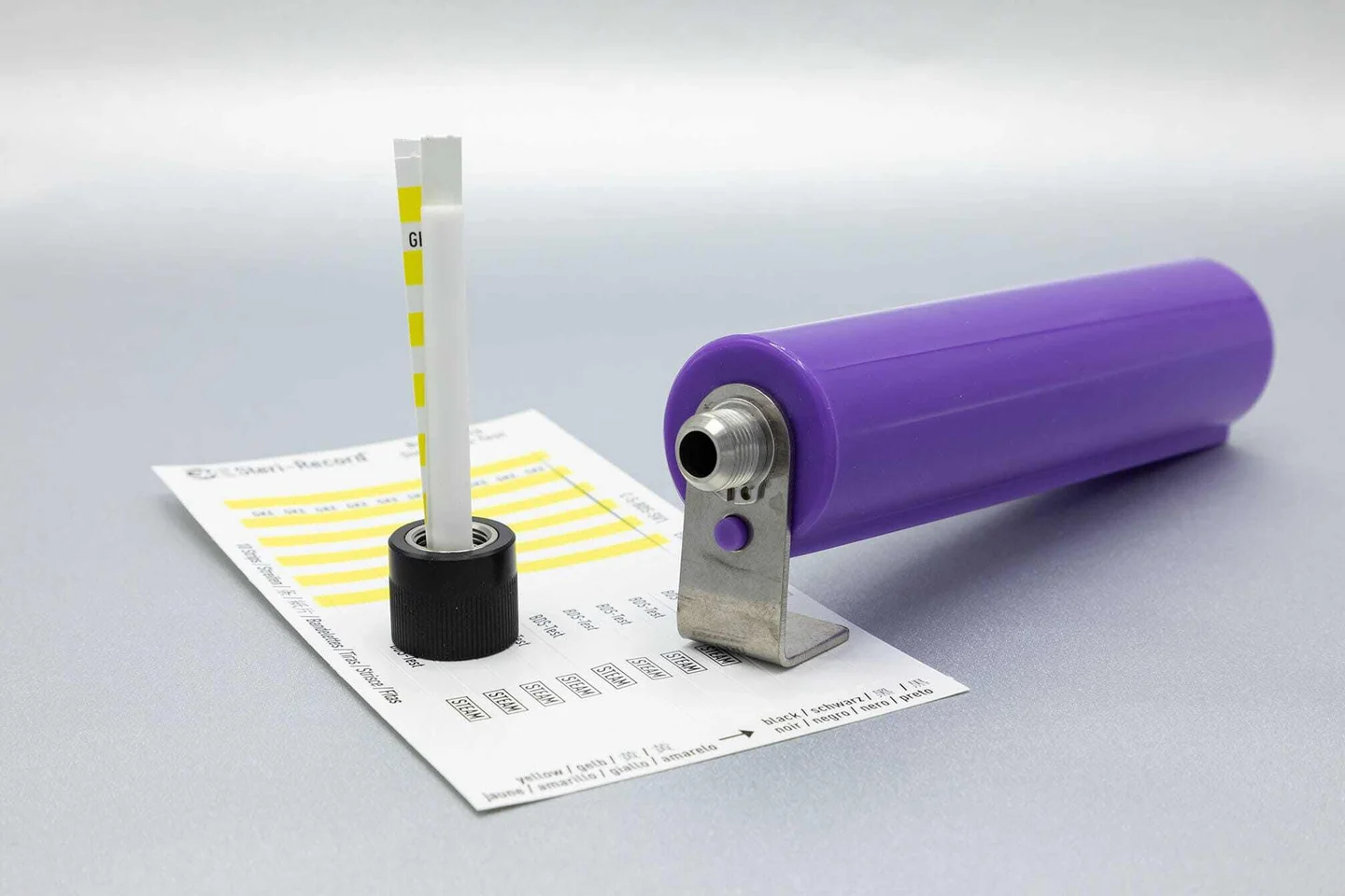 Process challenge device (PCD) for daily functionality check (type test, no sterility test) of air removal and steam penetration in steam sterilizers after start up, Compact-PCD, purple