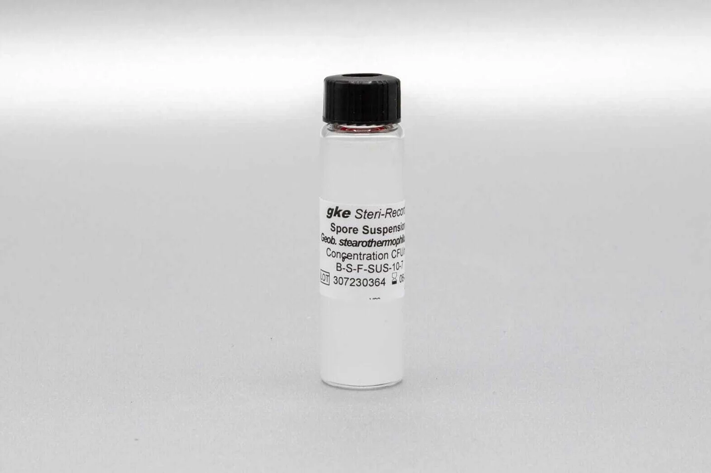 - 10 ml Geobacillus stearothermophilus suspension in glass bottles with rubber septum