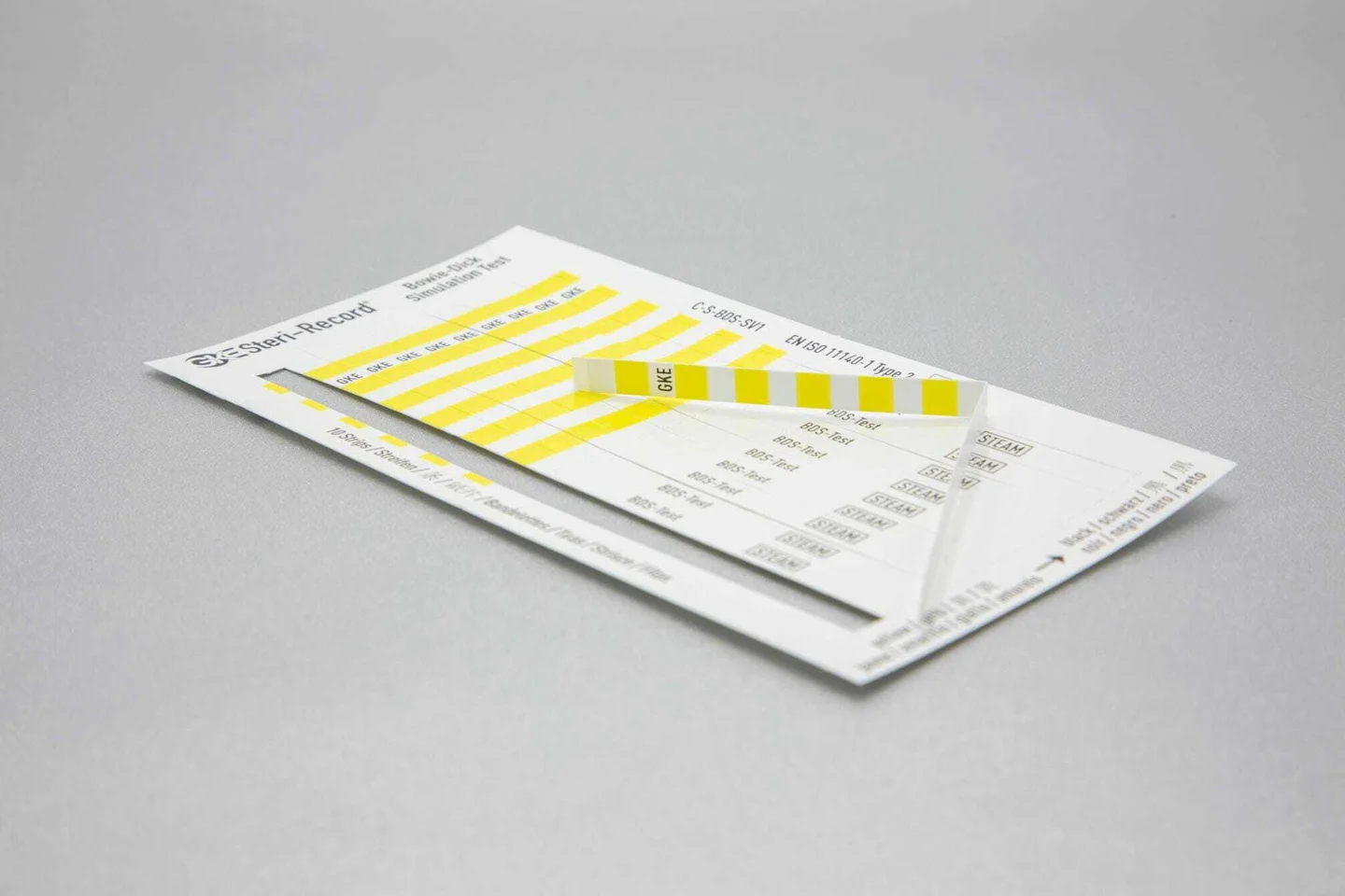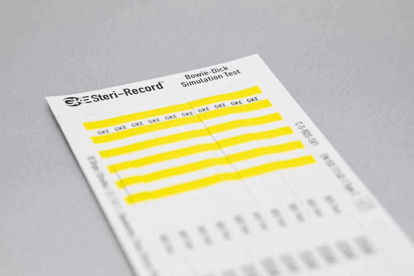- Self-adhesive indicator strips, suitable for all GKE Bowie-Dick simulation tests